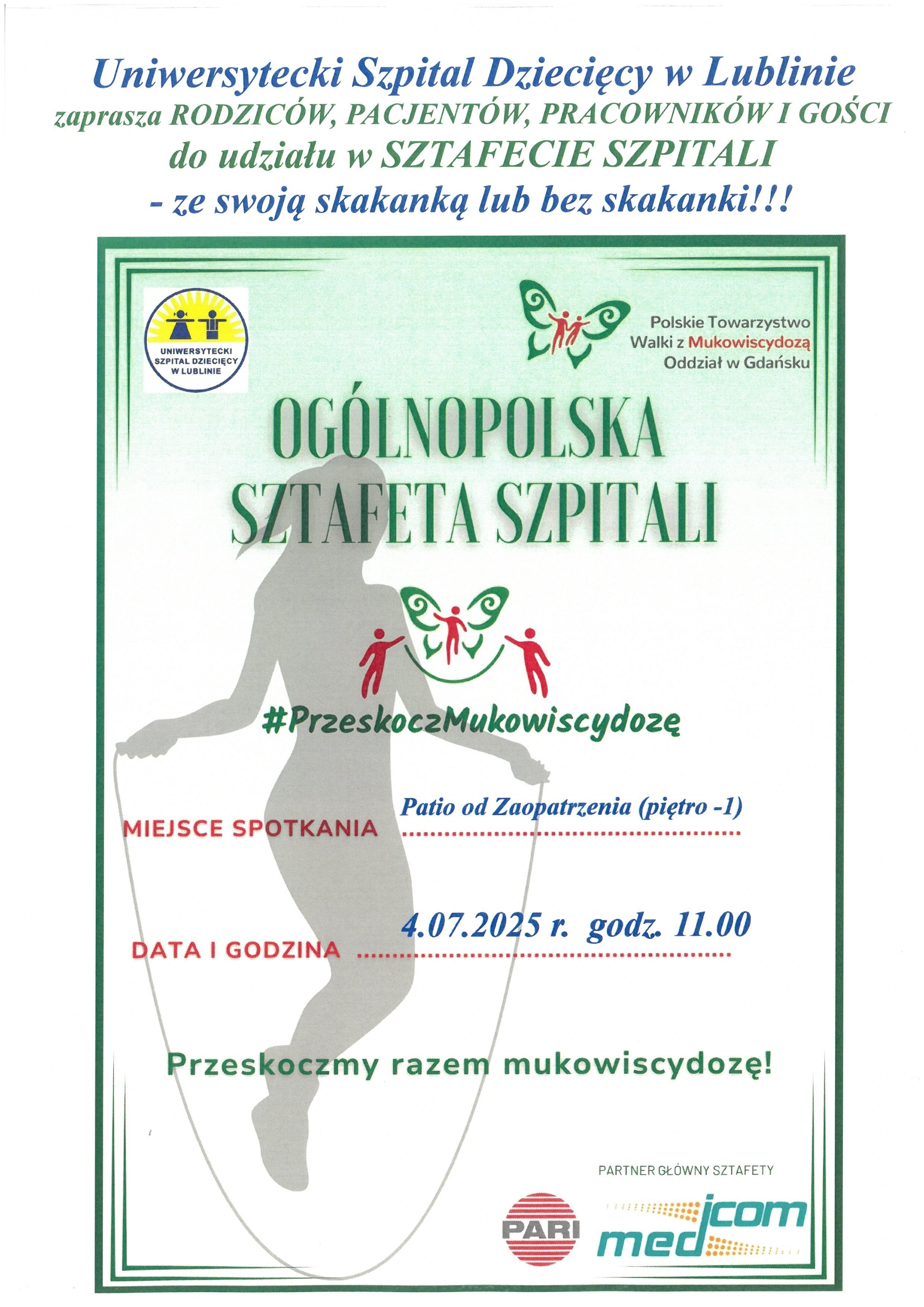 #PrzeskoczMukowiscydozę - Wielkie Skakanie 4.07.2025 o godz. 11.00 w Uniwersyteckim Szpitalu Dziecięcym