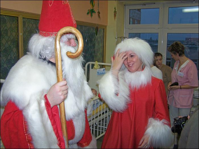 Zakończeniem tego szczególnego dla wszystkich Dzieci dnia, była wieczorna wizyta "Mikołajów" - studentów amerykańskich z Akademii Medycznej. Odwiedzając kilka Oddziałów, wręczyli prezenty rozradowanym Pacjentom życząc im, oczywiście w języku angielskim, Wesołych Świąt i szybkiego powrotu do zdrowia.