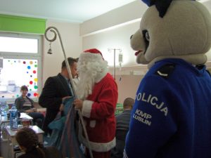 Pracownicy Komendy Wojewódzkiej Policji, w asyście sierżanta Poli i Mikołaja z workiem pełnym podarków, odwiedzili pacjentów Oddziału Chirurgii i Traumatologii Dziecięcej oraz Hematologii, Onkologii i Transplantologii Dziecięcej.