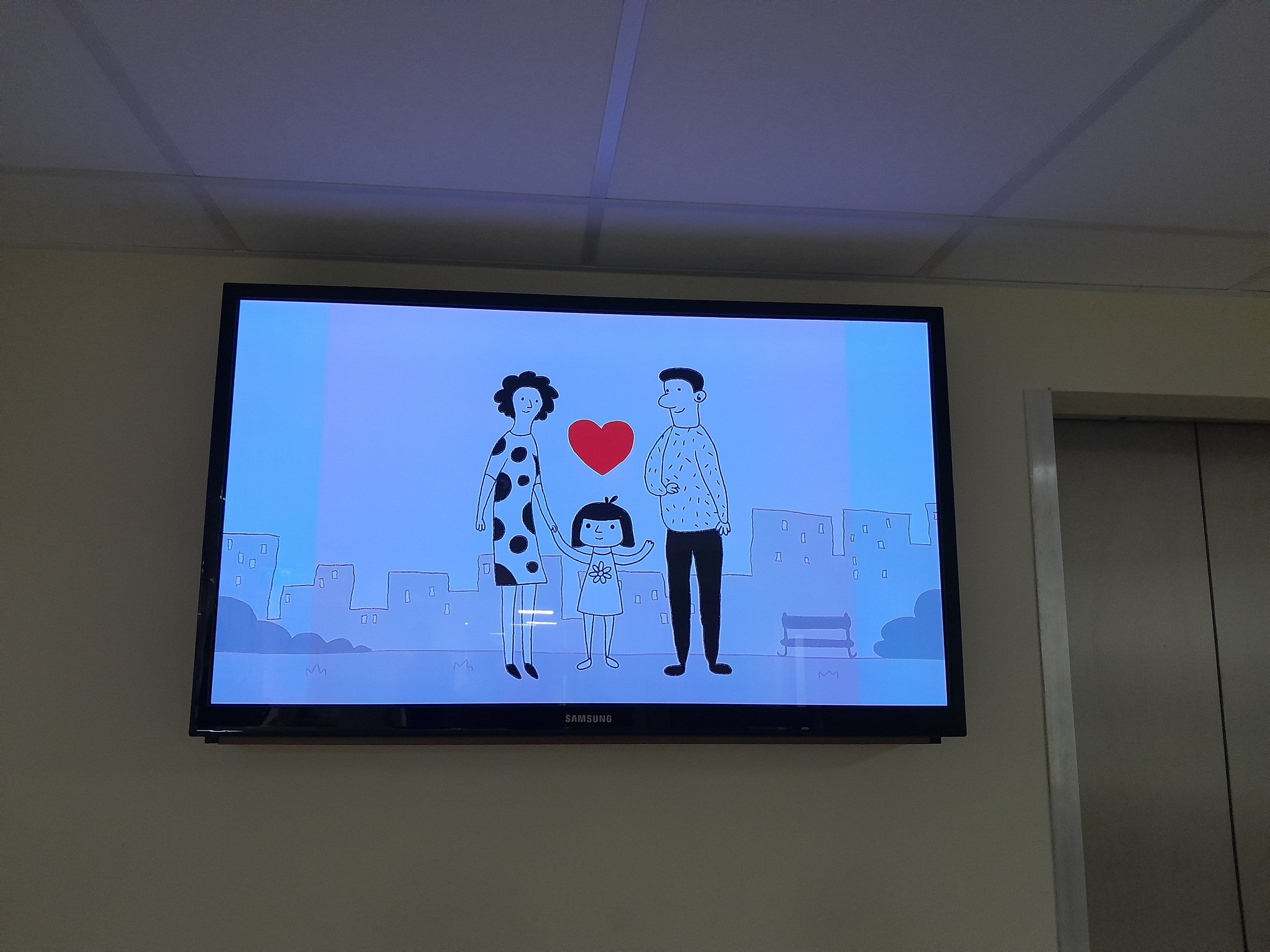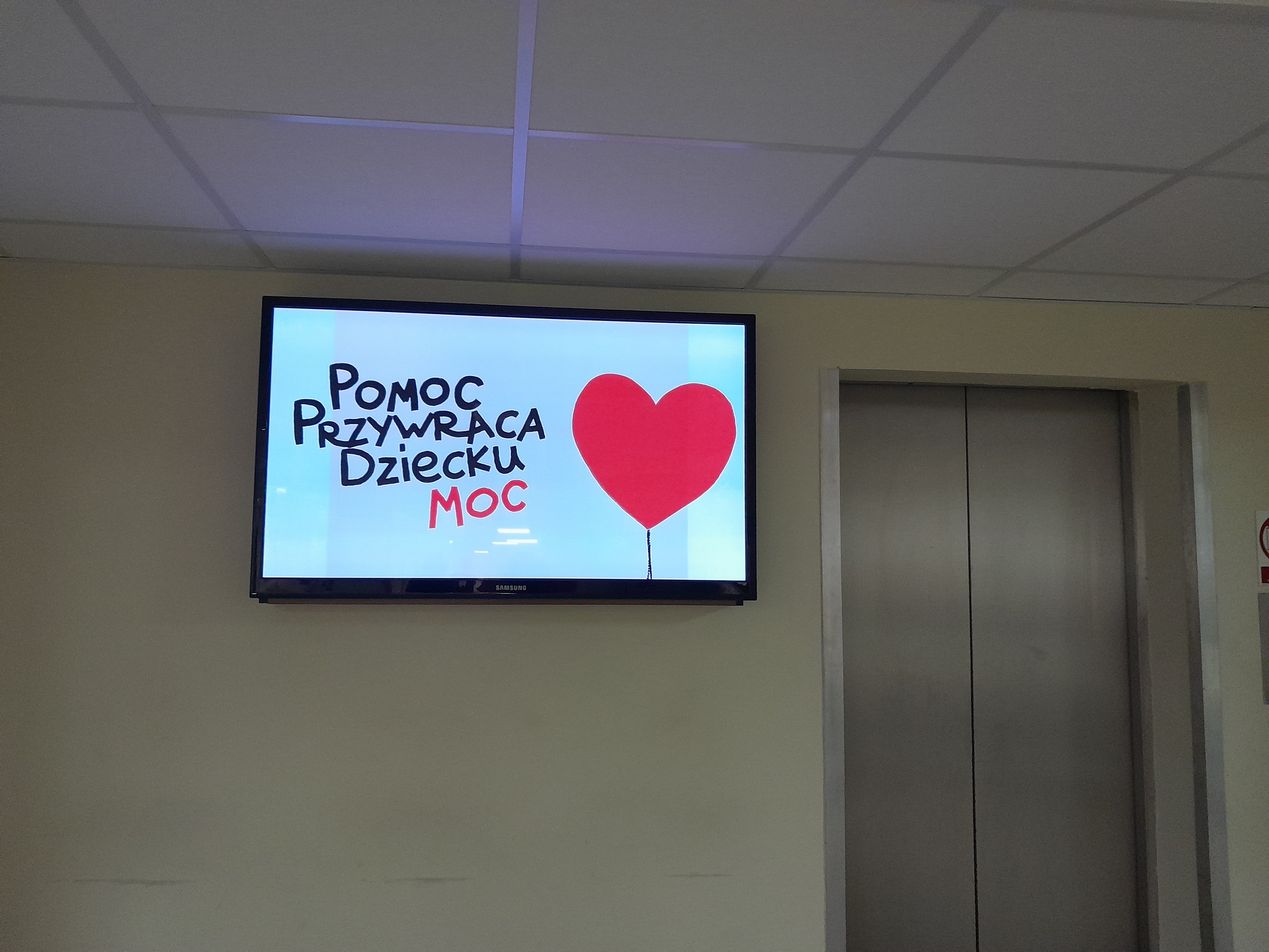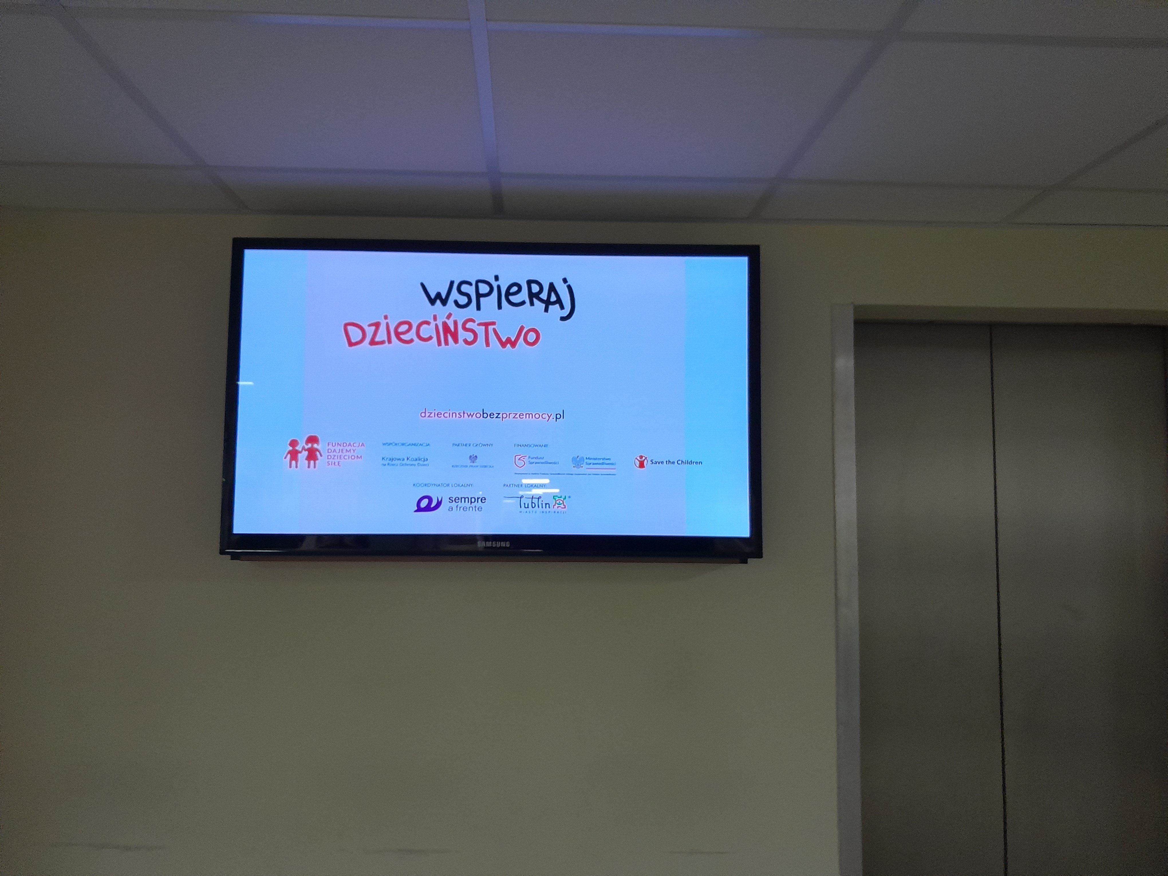 W holu głównym Poradni Specjalistycznych od 8 października do 19 listopada 2024 roku Pacjenci, Rodzice i Pracownicy mogli obejrzeć spot Kampanii pt. Dzieciństwo bez Przemocy.
