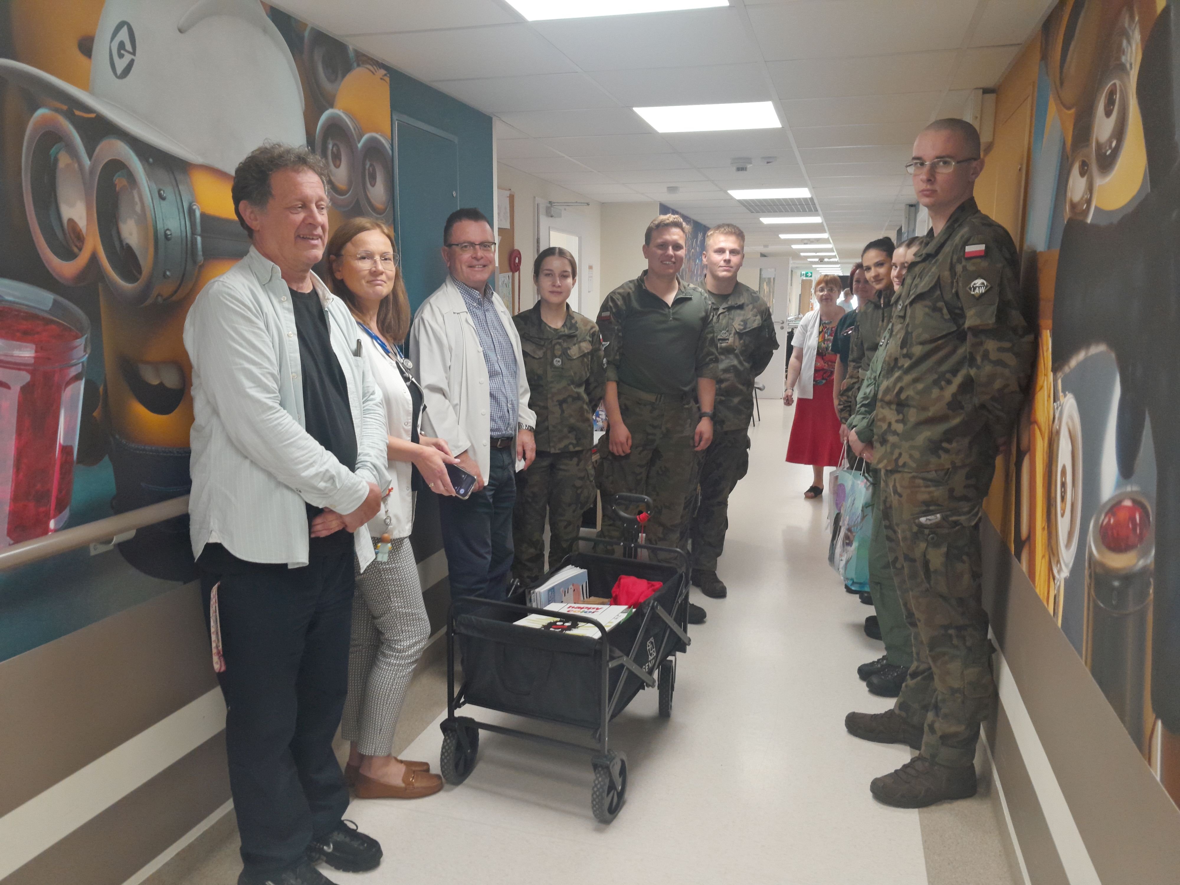 Wolontariusze Skrzydlatego Wolontariatu Lotniczej Akademii Wojskowej w Dęblinie wraz ze Stowarzyszeniem "Życie z chorobą nie musi być smutne" im. Karoli Majewskiej w dniu 3 czerwca 2025 roku odwiedzili Pacjentów Oddziału Pediatrii i Nefrologii Uniwersyteckiego Szpitala Dziecięcego w Lublinie.