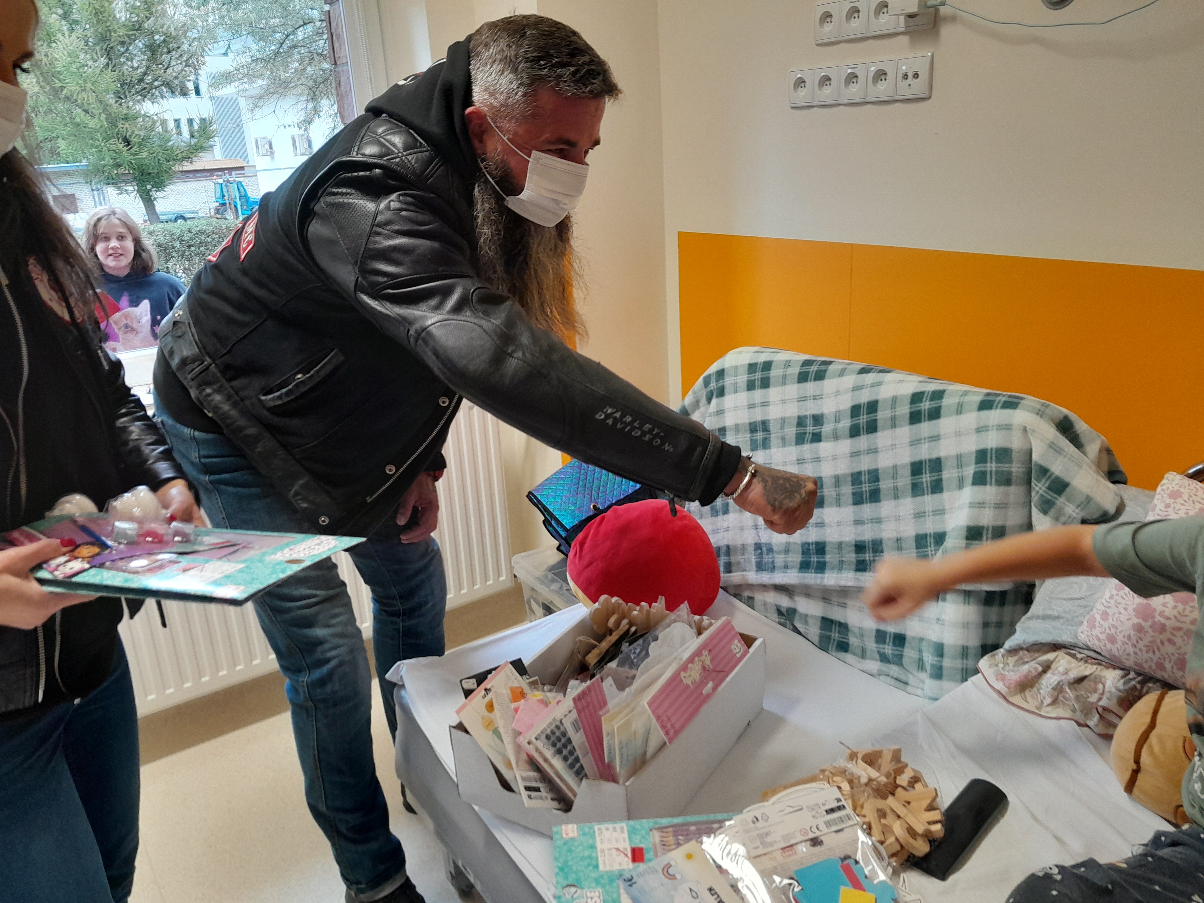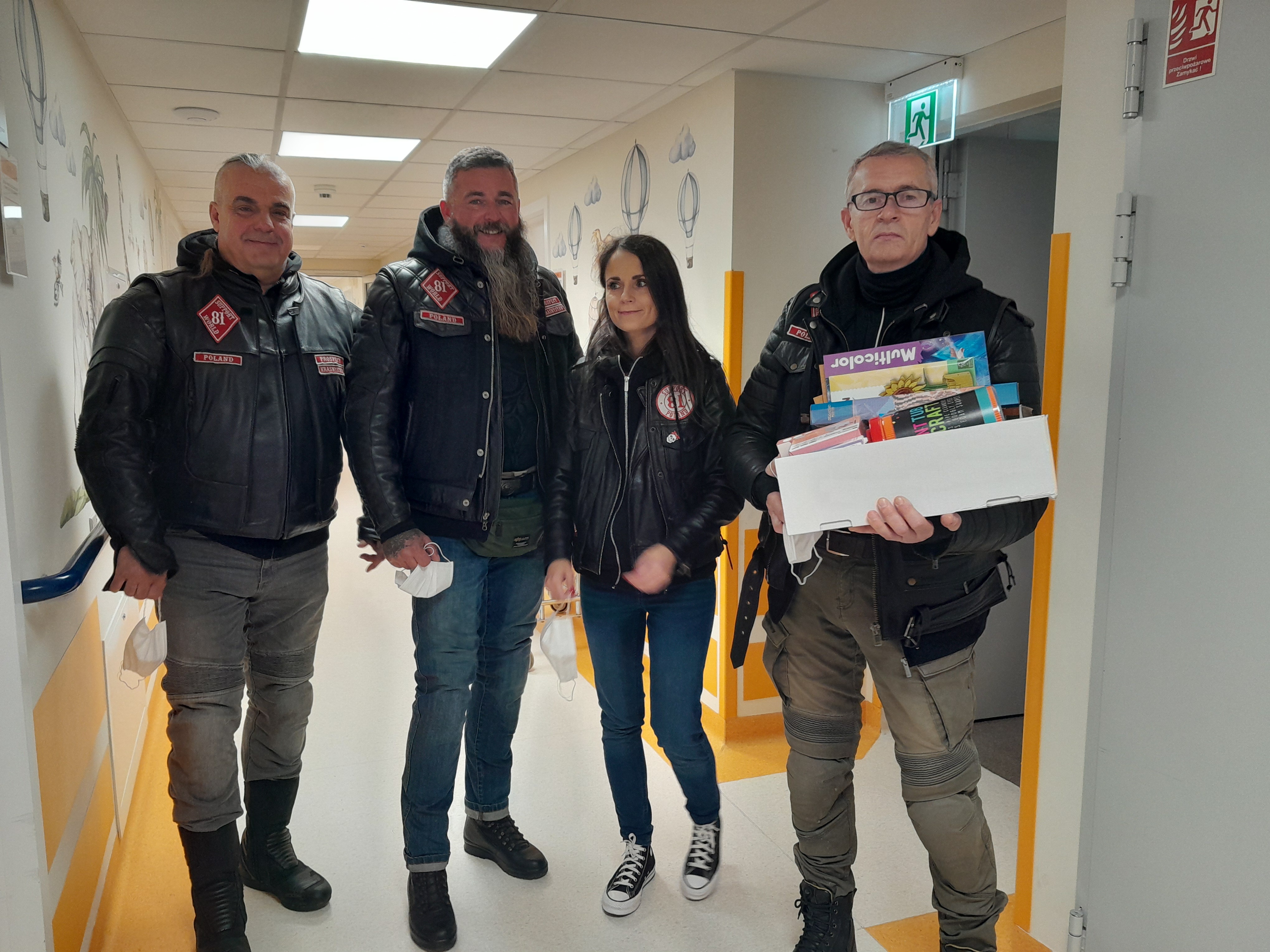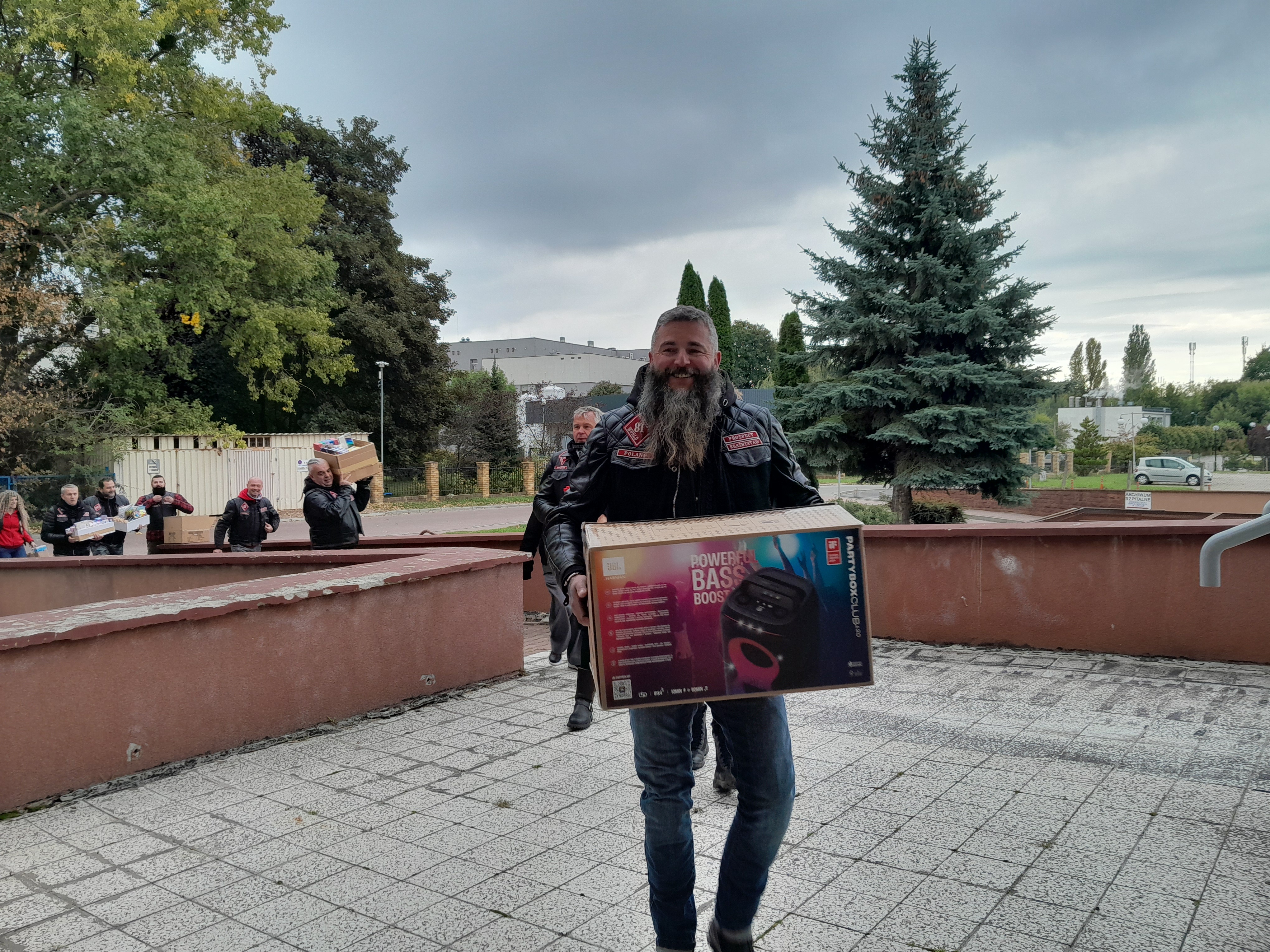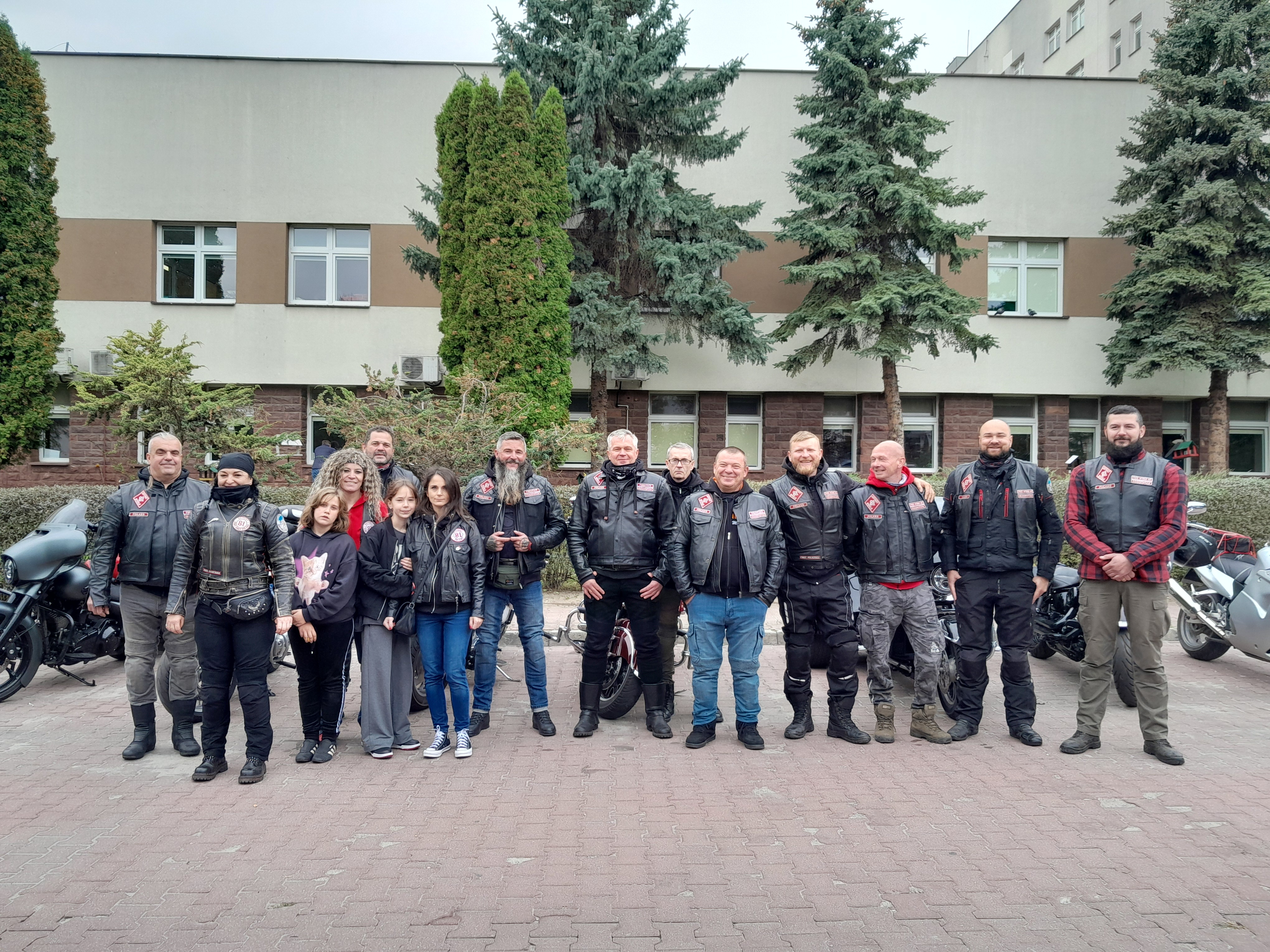 Motocykliści ze Stowarzyszenia Moto Dęblin i z Free Wings MC Support 81 World w dniu 28 września 2025 roku przekazali Pacjentom Oddziału Hematologii, Onkologii i Transplantologii Dziecięcej USzD artykuły papiernicze, szkolne i plastycznych oraz czapki ze zorganizowanej specjalnej w tym celu zbiórki.