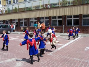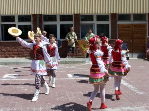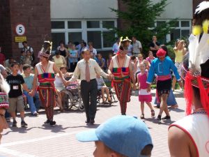 Zainteresowanie budziły zarówno ciekawe układy taneczne, jak i kolorowe stroje młodych tancerzy. Do wspólnej zabawy zachęcane były również zgromadzone na dziedzińcu DSK dzieci.