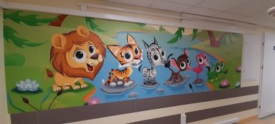 Barwne tapety ozdobiły ściany Stacji Dializ i holu I i II Oddziału Ortopedii Dziecięcej