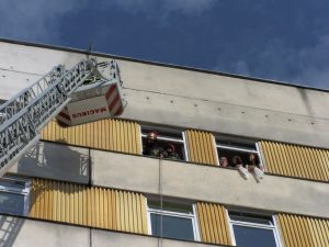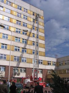 8 października br. w DSK, w ramach corocznych ćwiczeń p. poż., przeprowadzono próbną ewakuację pacjentów z Oddziału Otolaryngologii Dziecięcej.