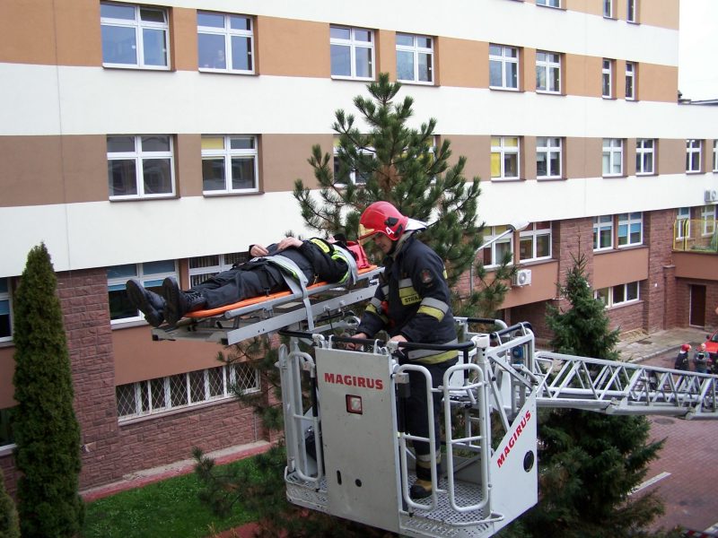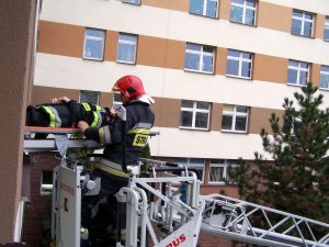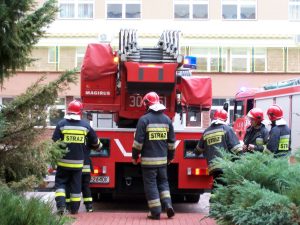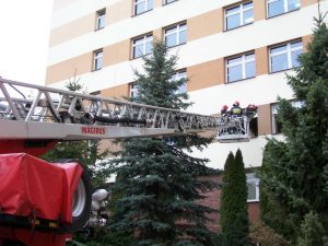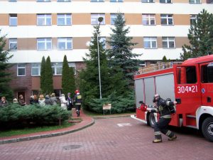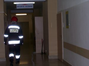 współdziałanie pracowników szpitala z jednostkami PSP.