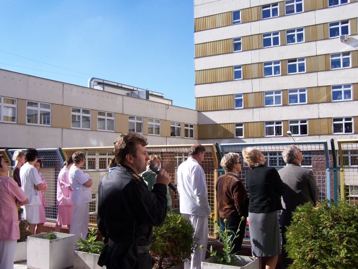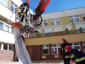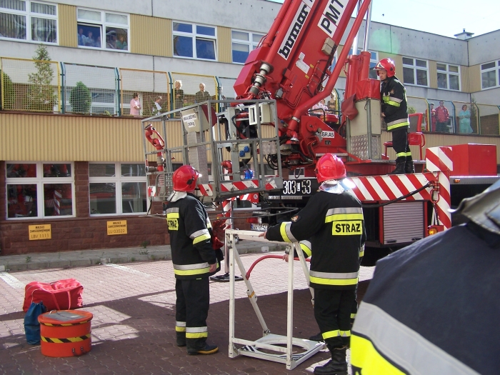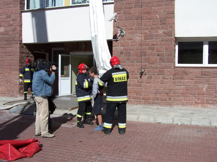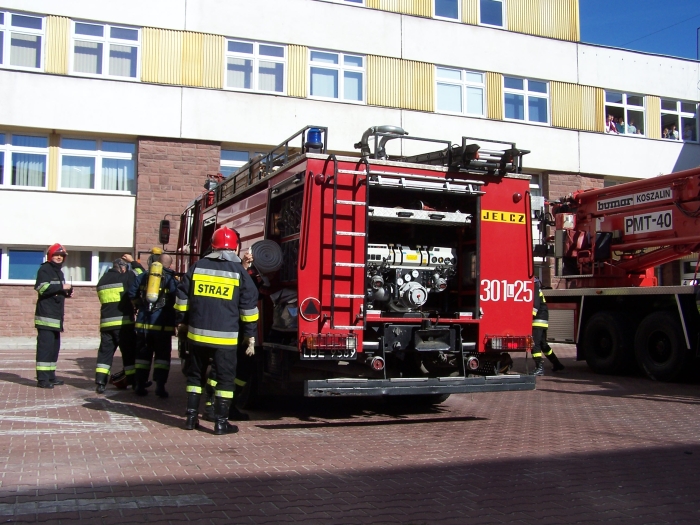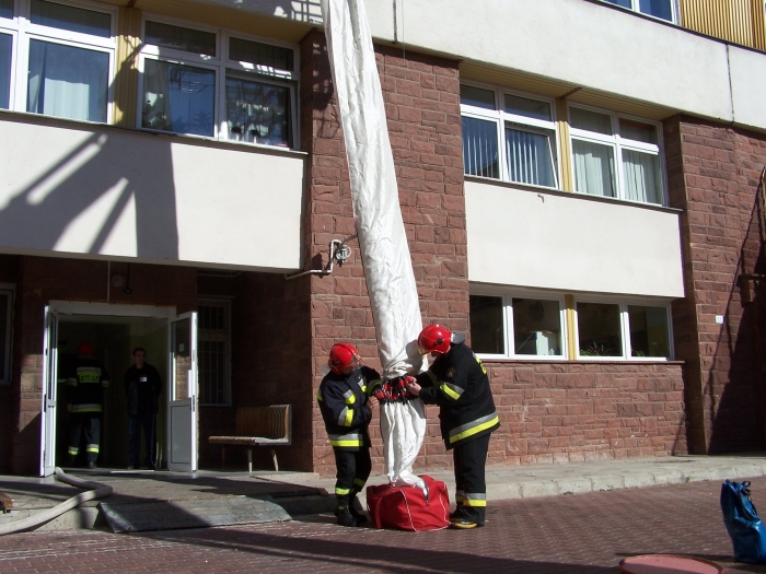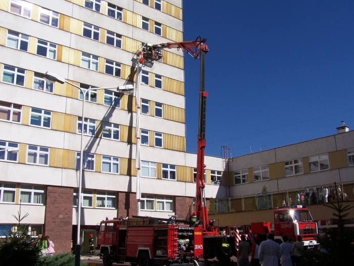 Na szczęście były to tylko ćwiczenia taktyczno-bojowe na obiekcie DSK w zakresie prowadzenia działań ratowniczo-gaśniczych we współdziałaniu z jednostkami Państwowej Straży Pożarnej. Celem tych ćwiczeń było wyrobienie nawyków w sprawnym kierowaniu i szybkim podejmowaniu decyzji w sytuacji zagrożenia pożarowego w wysokich częściach obiektu. Na szczególną uwagę zasługuje dobra znajomość procedur w zakresie działań ratowniczo-ewakuacyjnych przez kadrę Oddziału Gastroenterologii na czele z Panem Ordynatorem prof. dr hab. n med. Andrzejem Papierkowskim i Oddziałową mgr Renatą Widerą.