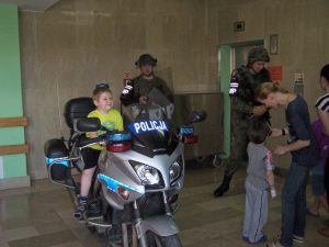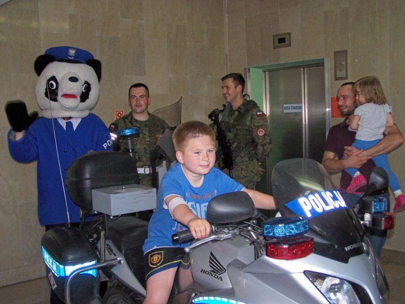 Już 28 maja odbyła się impreza pn. "Dzień Dziecka z Policją" . Była pogadanka edukacyjna, związana z bezpieczeństwem na wakacjach, zakończona konkursem z nagrodami. Pacjentów odwiedził również ich dobry znajomy - Miś Poli. W holu można było z bliska obejrzeć okazały motocykl używany na co dzień przez patrole policyjne.