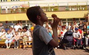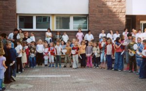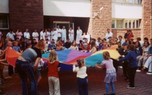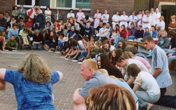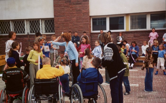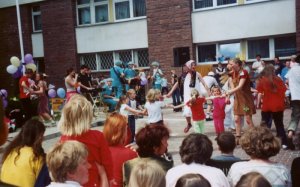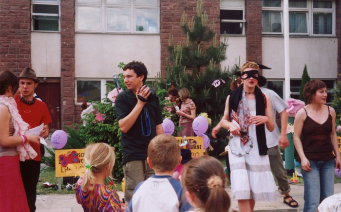 Świętowanie z okazji Dnia Dziecka rozpoczęliśmy już w godzinach popołudniowych 31 maja 2004r. Wewnętrzne patio przybrało odświętny charakter. Pojawiły się kolorowe motyle i kwiaty a także liczne balony. Gry, zabawy i konkursy przeplatane piosenką zostały przygotowane przez opiekunów prowadzących zajęcia w Centrum Rozwoju Dziecka w Lublinie.