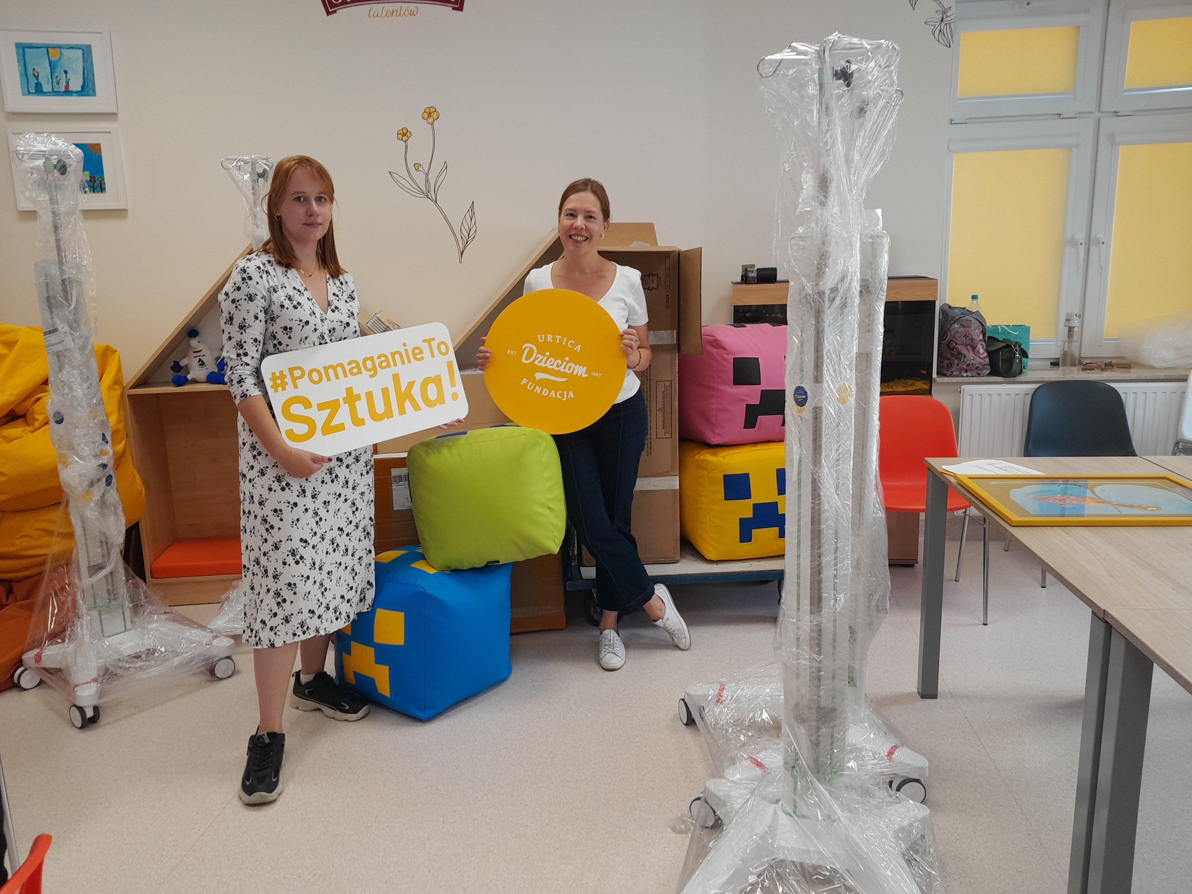 Pompy infuzyjne strzykawkowe (2 szt.), skanery do żył powierzchniowych (2szt.), wózki do mocowania stacji dokującej z pompami (4 szt.), pokrywę do stacji dokującej, uchwyt mocujący do stojaka do pompy, domek dla dzieci do zabawy oraz pufy kostki do siadania dla pacjentów trafiły do Oddziału z dwóch ostatnich Aukcji pn. Urtica Dzieciom. Pacjenci mogli uczestniczyć w warszatatach prowadzonych przez Panią Monikę Nowak. Materiały plastyczne zakupiła Fundacja.