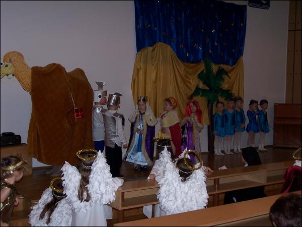 Na tle różnobarwnych stroi małych artystów oraz radosnego śpiewu kolęd zostały ukazane wydarzenia z Betlejem opowiadające o narodzinach Jezusa. Głównym wątkiem przedstawienia było ukazanie poszukiwania drogi do Zbawiciela przez Mędrców ze Wschodu, ich spotkanie z Królem Herodem i Jezusem w grocie betlejemskiej.