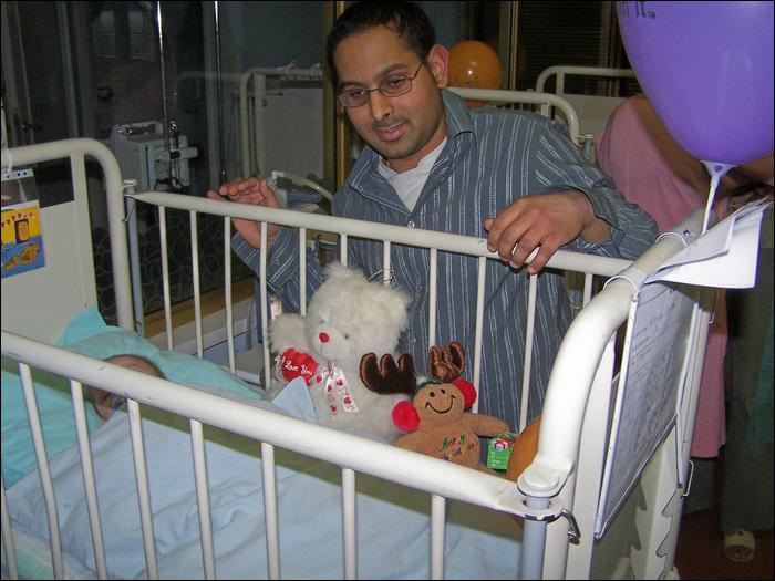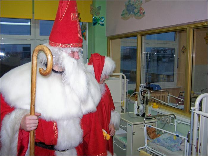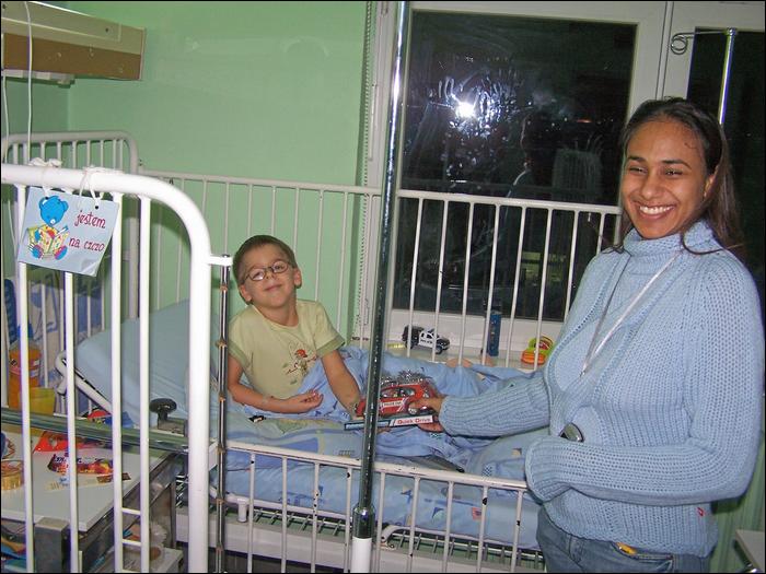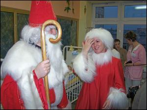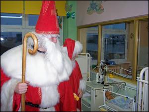 Zakończeniem tego szczególnego dla wszystkich Dzieci dnia, była wieczorna wizyta "Mikołajów" - studentów amerykańskich z Akademii Medycznej. Odwiedzając kilka Oddziałów, wręczyli prezenty rozradowanym Pacjentom życząc im, oczywiście w języku angielskim, Wesołych Świąt i szybkiego powrotu do zdrowia.