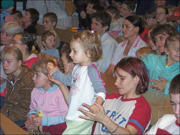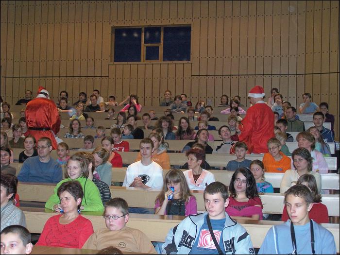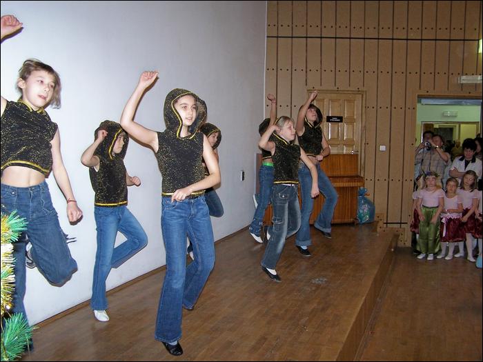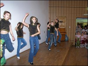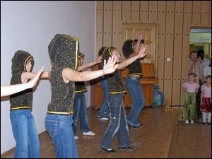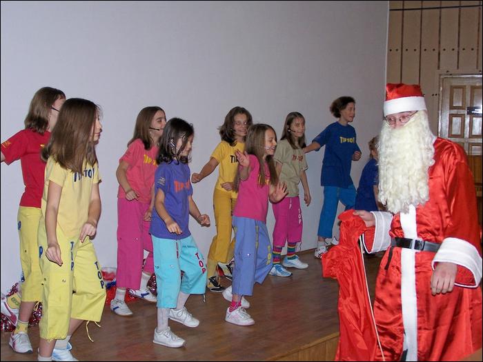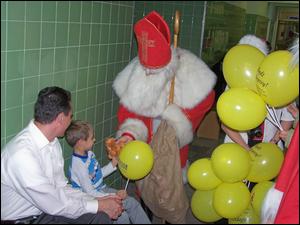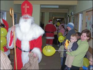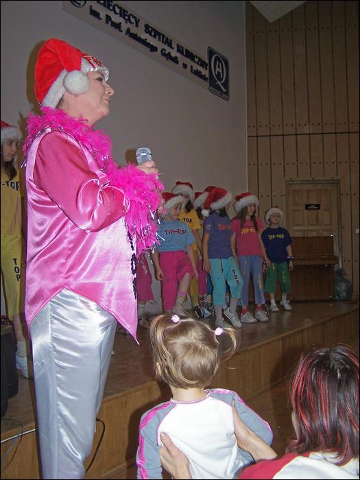 Na tym jednak atrakcje "Mikołajkowego Dnia" się nie zakończyły. Po południu w auli Szpitala odbyła się impreza, podczas której swoje układy taneczne zaprezentowały zespoły "Tip-Top" oraz "Ane-Mon" zespół z Klubu Osiedlowego Ruta Spółdzielni Mieszkaniowej Czuby. Oczywiście nie mogło zabraknąć na auli Mikołaja, jak zwykle bardzo hojnego w stosunku do Dzieci.