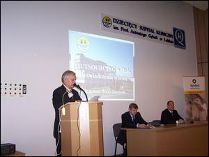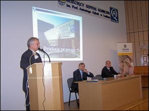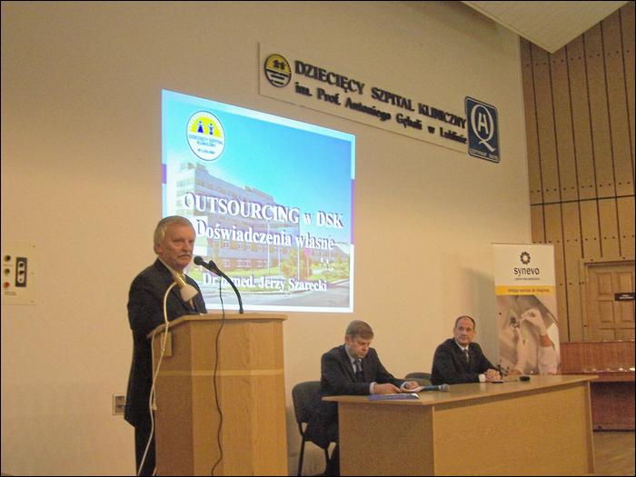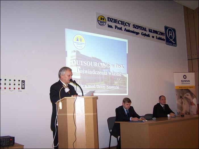 Jako pierwszy głos zabrał Dyrektor Naczelny Szpitala dr n. med. Jerzy Szarecki, który w swoim wystąpieniu przybliżył wszystkim zebranym zagadnienie outsourcingu i związane z nim korzyści płynące dla Szpitala. Podkreślił, że zlecanie usług firmom zewnętrznym jest uzasadnione, jeśli podwyższa jakość usług i obniża koszty związane z ich świadczeniem.