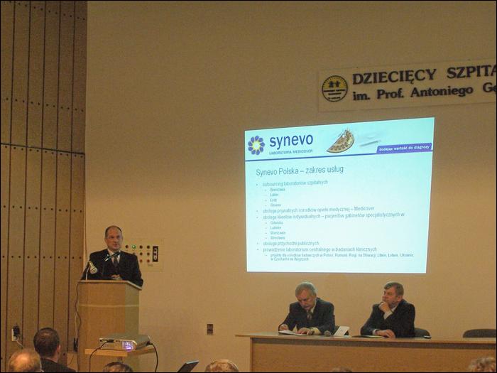 Podsumowaniem konferencji było wystąpienie lek. med. Wojciecha Budacza - Dyrektora Zarządzającego SYNEVO - Laboratoria Medicover. Przedstawił on zebranym gościom wizerunek reprezentowanej przez siebie firmy oraz szczegóły dotyczące jej współpracy ze Szpitalem.