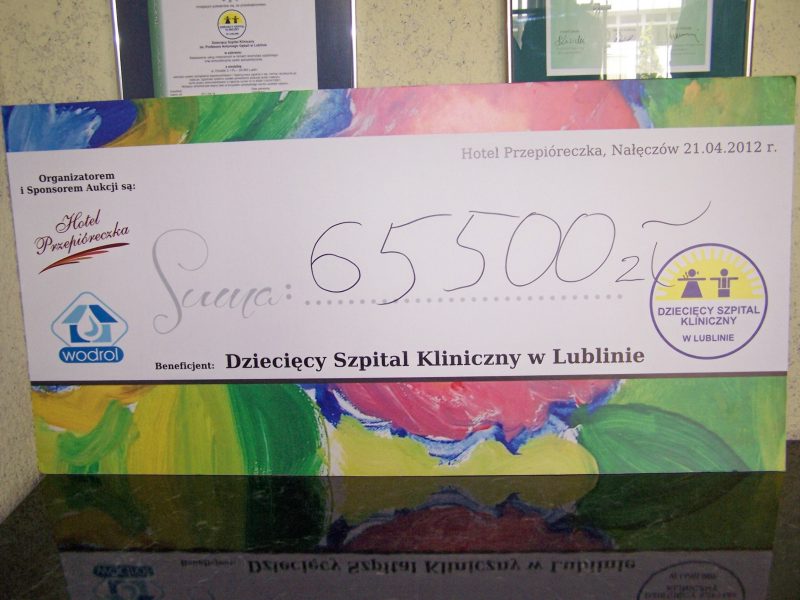 Sprzęt został zakupiony ze środków finansowych zebranych podczas aukcji na rzecz pacjentów z Kliniki Hematologii, Onkologii i Transplantologii Dziecięcej oraz na wsparcie Onko-Olimpiady dla dzieci z chorobami nowotworowymi organizowanej przez Fundację Spełnionych Marzeń. Wydarzenie miało miejsce w dniu 21 kwietnia 2012 r. w Hotelu Przepióreczka. Podczas aukcji zorganizowanej przez Hotel Przepióreczka i firmę Wodrol Inwestycje Sp. z o.o. udało się zebrać 131 tyś., z czego połowa została przeznaczona dla DSK na zakup systemu do analizy obrazu w badaniach cytogenetycznych (platformy zbierania i analizy obrazu Genesis i oprogramowania do kardiotypowania BandView) i czterech telewizorów do Oddziału Przeszczepiania Szpiku.