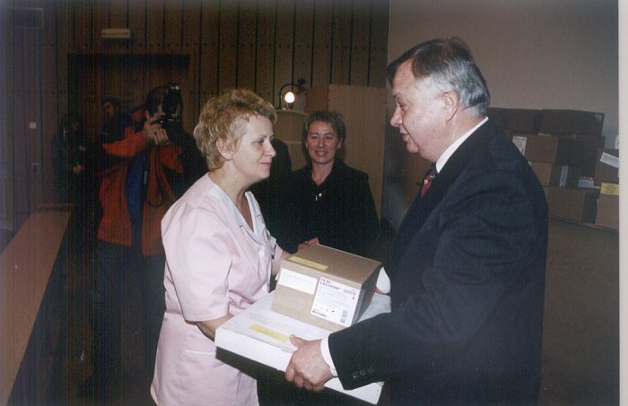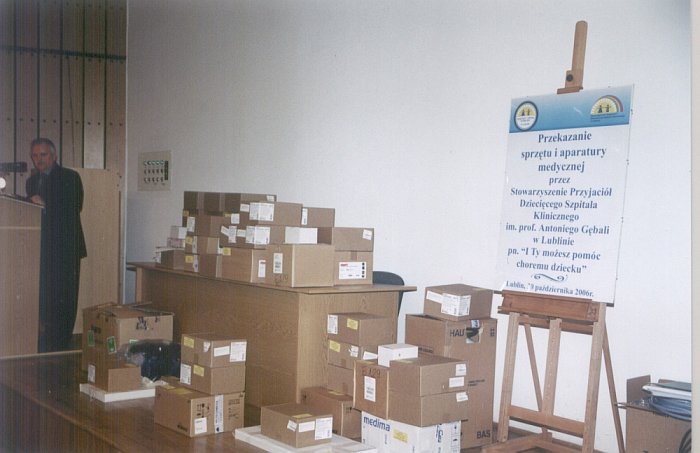 Przekazanie sprzętu dla Oddziałów Szpitala odbyło się podczas spotkania 30 października 2006 r. w Auli DSK. Wśród przybyłych gości znaleźli się: Jarosław Zdrojkowski – V-ce Wojewoda Lubelski, Stanisław Gogacz – V-ce Marszałek Województwa Lubelskiego, Janusz Mazurek – Z-ca Prezydenta Miasta, St. bryg. Andrzej Gregorek – Komendant Wojewódzki Straży Pożarnej, mjr Janusz Kasperek – Szef Wydziału Logistyki Wojewódzkiego Sztabu Wojskowego, Bożenna Zasada – Naczelnik Wydz. Polit. Lekami LOW NFZ, prof. Janusz Solski – Przewodniczący Rady Społecznej DSK, prof. Andrzej Drop – Prorektor ds. Klinicznych i Szkoleń Podyplomowych AM, ks. Krzysztof Podstawka – Archidiecezjalny Duszpasterz Zdrowia, mgr Tadeusz Kontek – Kanclerz AM, mgr Wiesława Sikorowska-Floriańczyk – Przewodnicząca Okręgowej Izby Pielęgniarek, Barbara Nazarkiewicz – Z-ca Dyrektora Lubelskiego Okręgowego Zarządu PCK, mgr Danuta Golema – V-ce Kanclerz AM, dr Adam Borowicz – Dyrektor SPSK 1 w Lublinie, lek. med. Piotr Cioczek – Dyrektor Samodzielnego Publicznego Szpitala Wojewódzkiego im. Jana Bożego w Lublinie, dr Zdzisław Kulesza – Dyrektor Wojewódzkiej Stacji Pogotowia Ratunkowego i Transportu Sanitarnego, Anna Jesionka – Dyrektor Inspektoratu PZU w Lublinie, Alina Kołodziejczyk – Członek Rady Społecznej DSK, artyści: Mieczysława Izdebska-Łazorek, Piotr Żółkiewski, Jacek Kwiatkowski; Kierownicy Klinik, Ordynatorzy Oddziałów, Pielęgniarki Oddziałowe, Zarząd oraz Członkowie Stowarzyszenia Przyjaciół DSK.