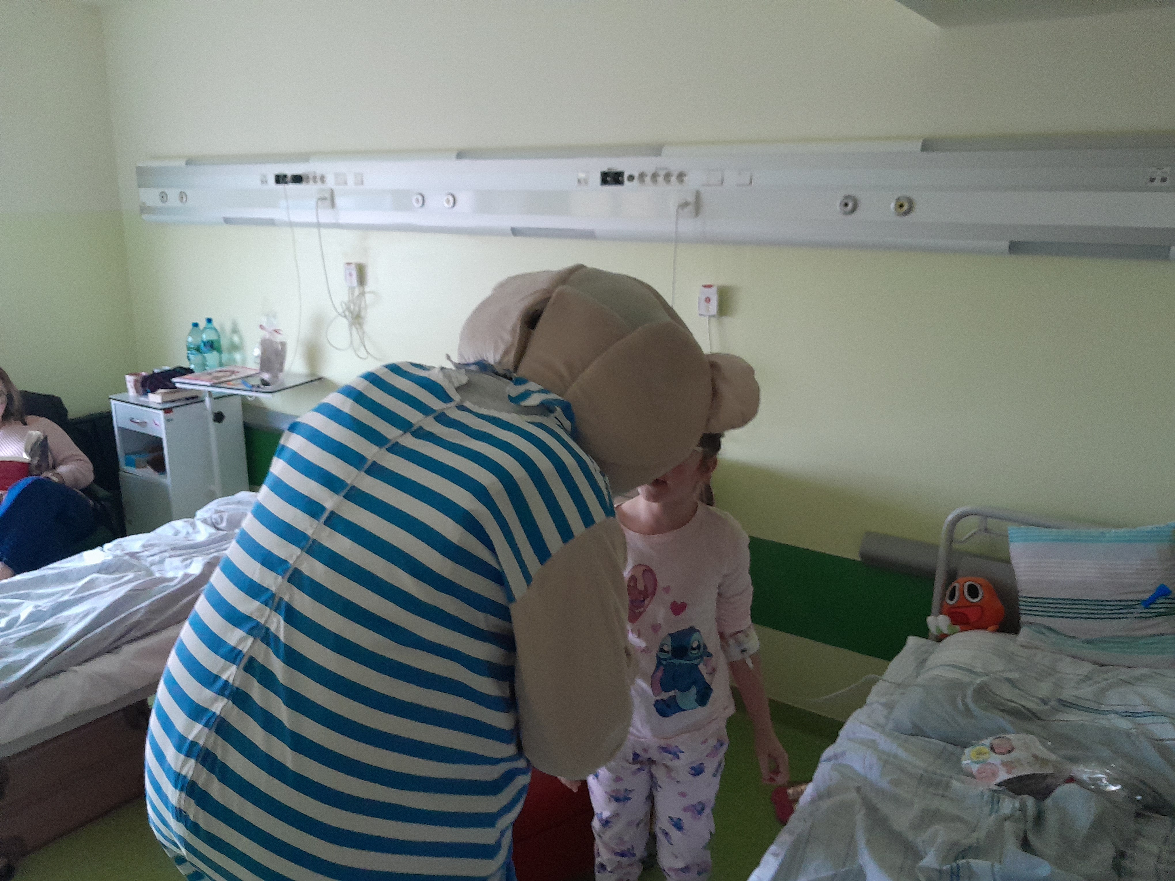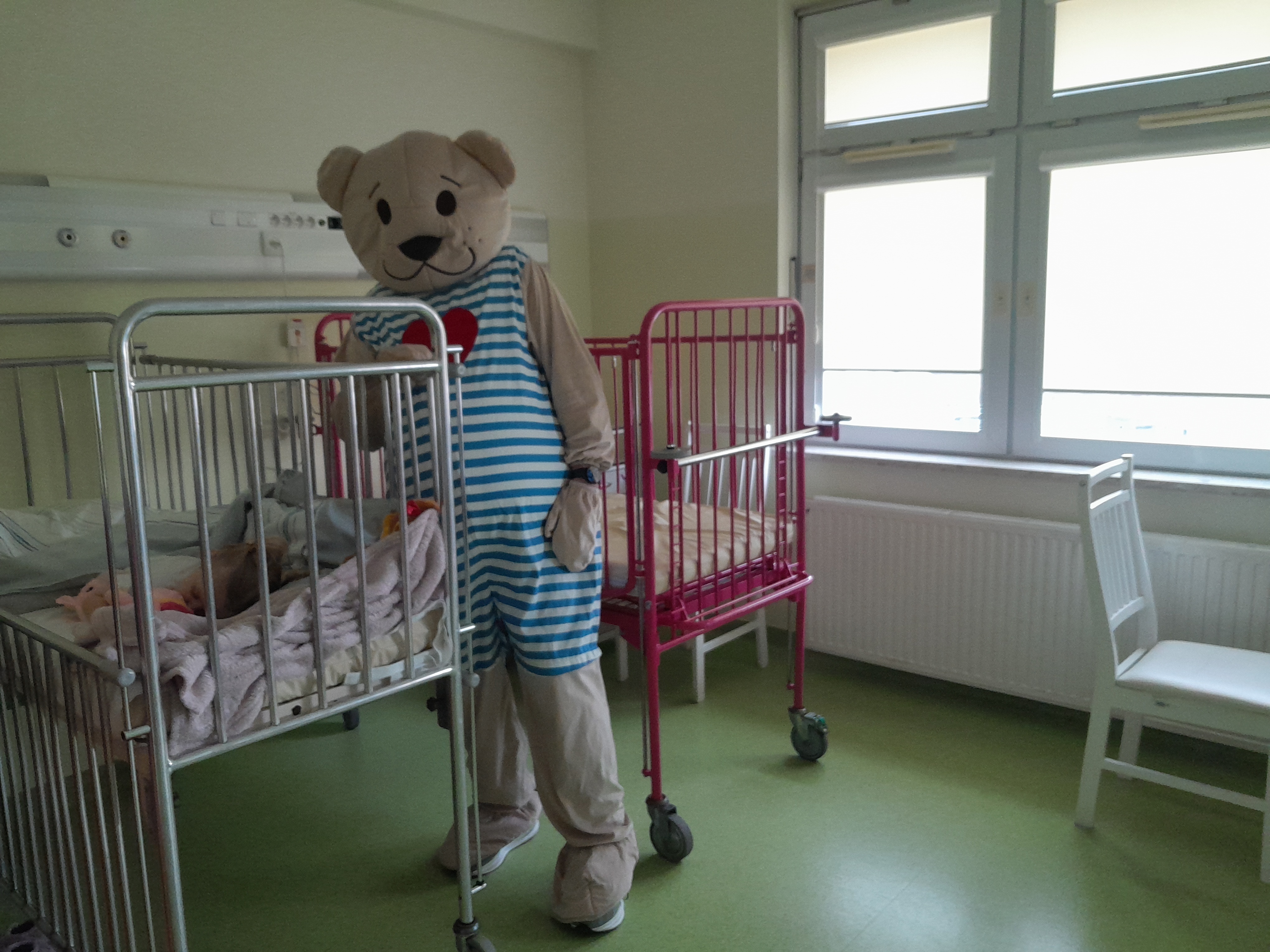 SKENDE razem z wolontariuszami z Drużyny poMocy oraz Misiem Fablerem z IKEA odwiedzili Pacjentów Oddziału Otalaryngologii Dziecięcej, Foniatrii i Audiologii