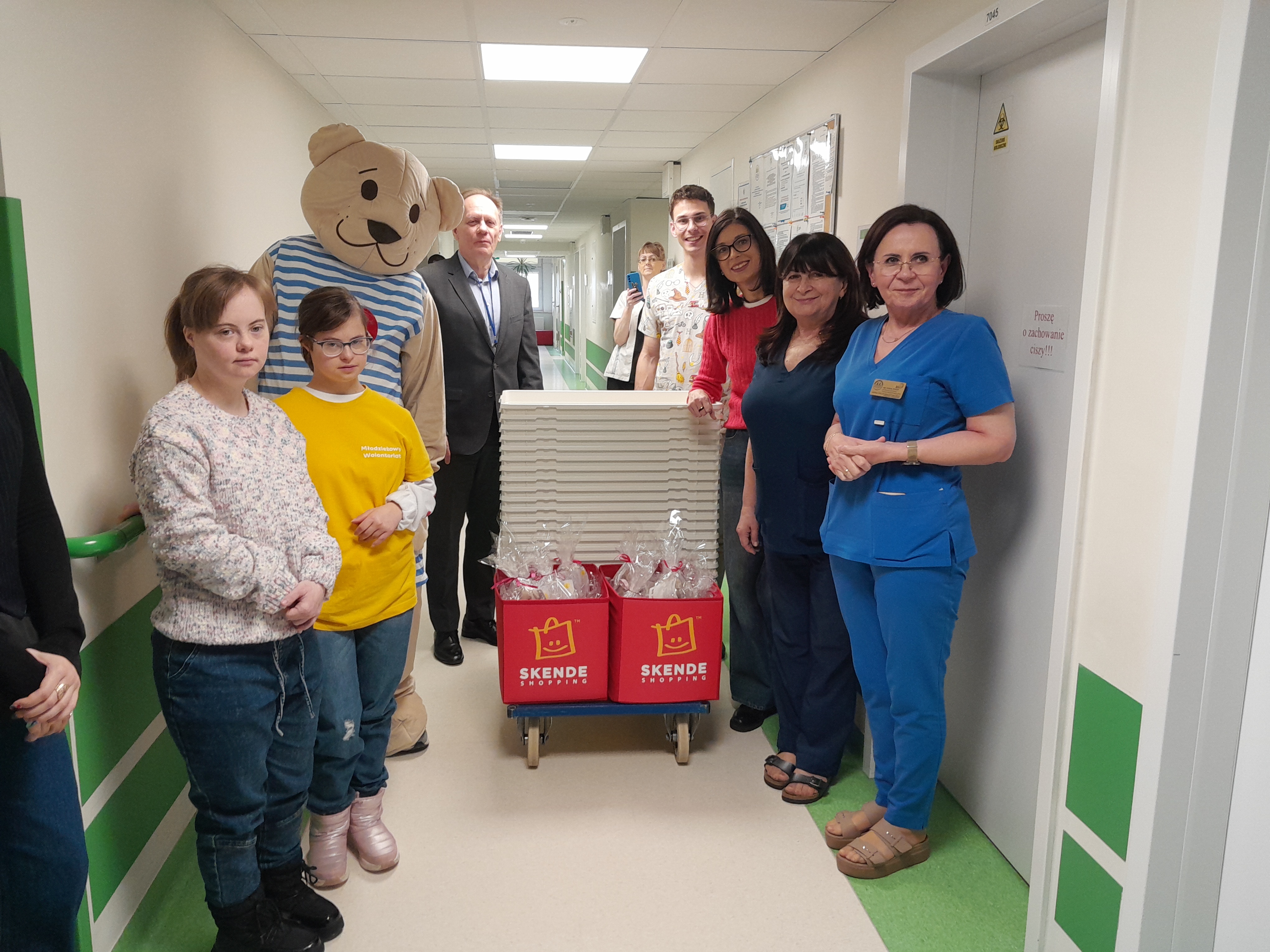 W dniu 24 lutego 2026 roku SKENDE z wolontariuszami z Drużyny poMocy oraz Misiem Fablerem z IKEA odwiedzili dzieci leczone w Oddziale Otolaryngologii Dziecięcej, Foniatrii i Audiologii w Uniwersyteckim Szpitalu Dziecięcym.