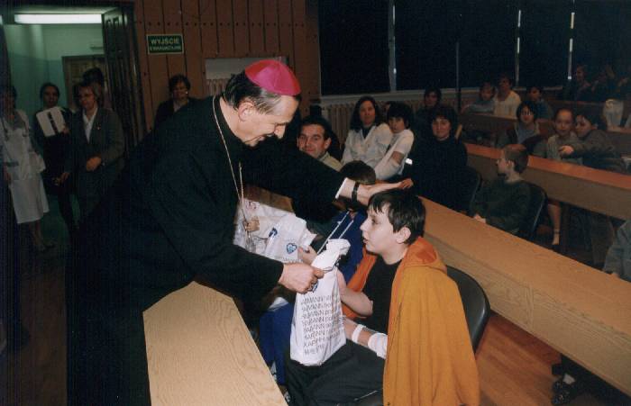 Zwracając się do dzieci i młodzieży Ksiądz Biskup stwierdził, iż cieszy się, że mogli przyjść na to spotkanie, bo to oznacza, że tak bardzo chorzy nie są! Odwołując się do konkursu na najlepszego lekarza dodał, iż gdyby dzieci w tym szpitalu chciały przeprowadzić podobny konkurs, to miałyby poważny problem. Wszyscy lekarze są bardzo dobrzy.