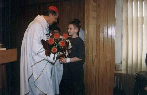 Na zakończenie koncertu Ksiądz Biskup, wraz z Księdzem Kanonikiem Andrzejem Głosem - Dyrektorem Caritas Archidiecezji Lubelskiej, wręczyli dzieciom upominki przygotowane przez Caritas.