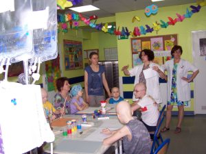 Warsztaty plastyczne nie mają jedynie wymiaru finansowego, wartością nadrzędną jest tu czas poświęcony chorym dzieciom, zaangażowanie wielu osób dobrego serca w to, by Mali Pacjenci wśród śmiechu i zabawy mogli na chwilę oderwać się od szpitalnej codzienności. Te warsztaty mają jeszcze inny, szczególny wymiar : uczą dzieci wsparcia pracą własnych rąk tych, których los doświadczył najciężej. Pokazują , że warto pomagać innym.