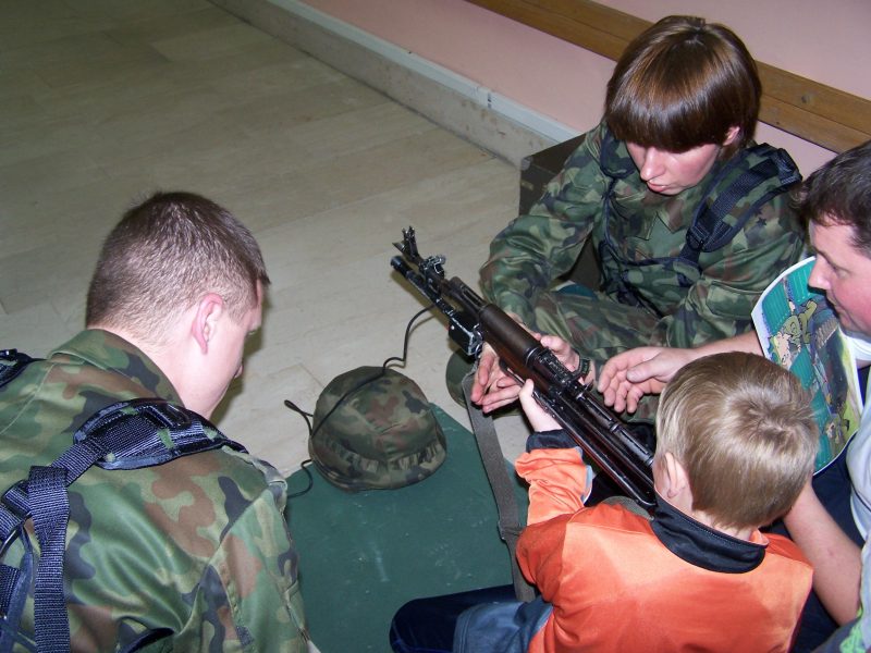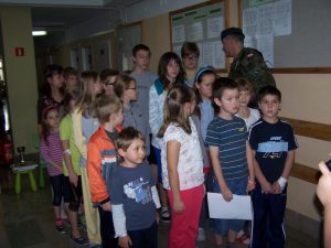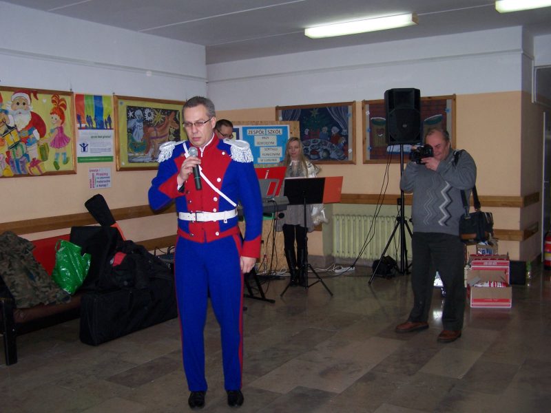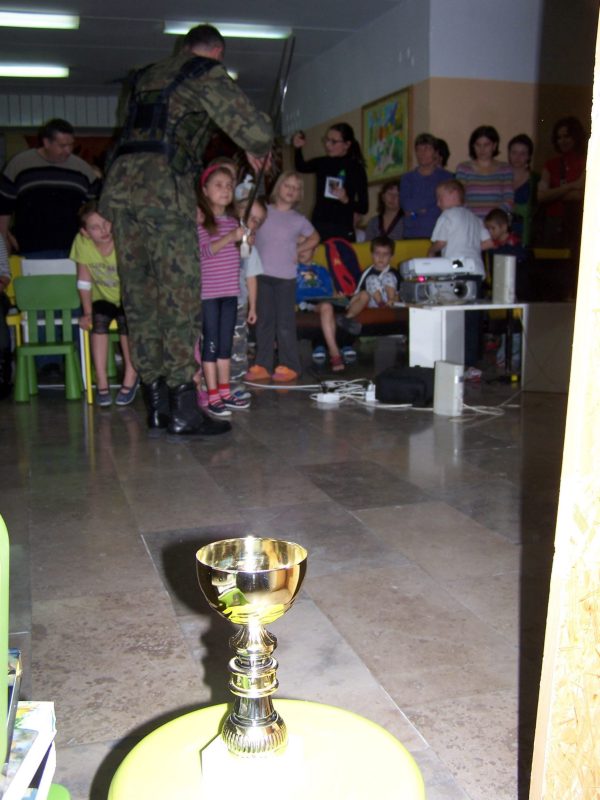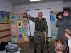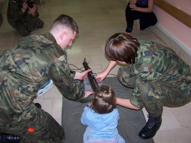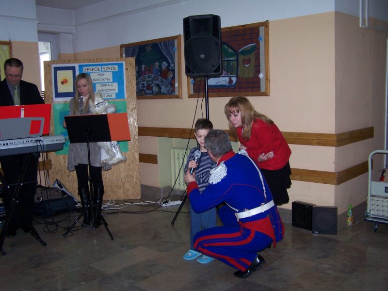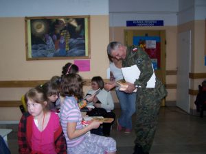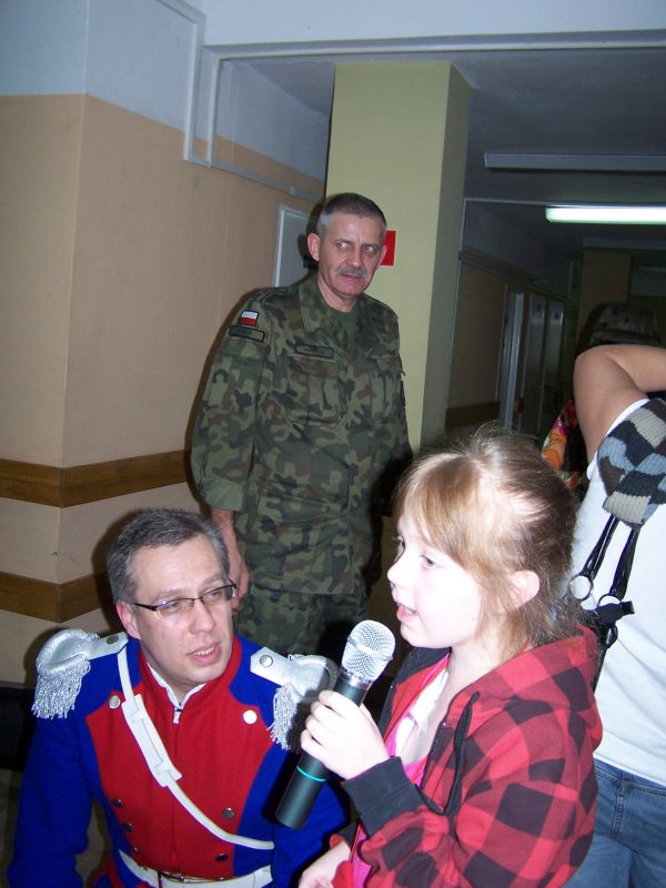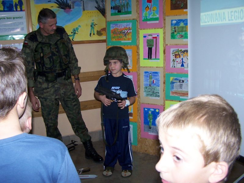 22 grudnia br. ppłk Dariusz Krzysztofik, kpt. Dariusz Drączkowski, ppor. Elżbieta Zdunek, st. chor. sztab. Waldemar Dąbczak oraz st. szer. zaw. Grzegorz Wnuk byli gośćmi Małych Pacjentów DSK już po raz trzeci. Tym razem przyjechali, aby wspólnie zaśpiewać kolędy i rozdać upominki świąteczne. Jak zwykle, atrakcją była prezentacja broni i wyposażenia wojskowego, a także symulator strzelniczy, gdzie każdy mógł bezpiecznie postrzelać do wirtualnej tarczy.