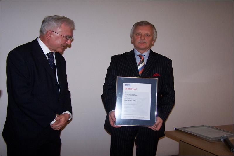 Wręczenie Certyfikatu Systemu Zarządzania Jakością Iso 9001:2000