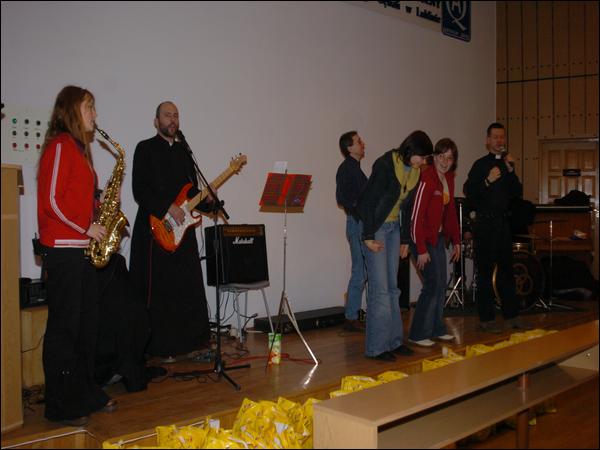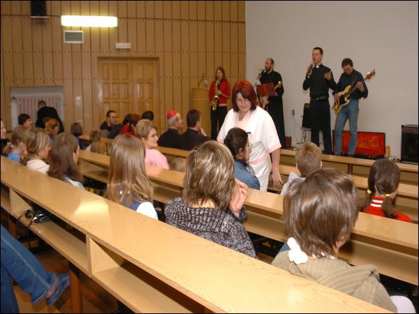 Po uroczystościach liturgicznych odbyło się spotkanie w auli na koncercie w wykonaniu zespołu muzycznego FRA KSA BAND z parafii św. Franciszka Ksawerego w Krasnystawie. Dźwięki rozlegającej się muzyki łączyły się ze słowami piosenek religijnych i radością na twarzy Małych Pacjentów. Wspólny śpiew i towarzyszące im gesty angażowały zarówno wolontariuszy, jak i Małych Pacjentów.