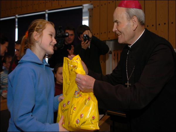 Na zakończenie uroczystości Ksiądz Arcybiskup Senior Bolesław Pylak i Ksiądz Prałat Andrzej Głos wręczyli dzieciom paczki, przygotowane przez Caritas Archidiecezji Lubelskiej.