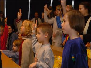 Zwieńczeniem obchodów było podziękowanie dzieci oraz wręczenie pamiątkowych prac plastycznych.